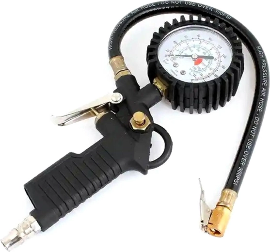 Compacte luchtpistool voor het oppompen van banden. De eenvoudige constructie van het apparaat maakt het werk makkelijker en de overzichtelijke manometer (drukmeter) toont de huidige druk tegelijk in meerdere eenheden (PSI / BAR). De comfortabele, flexibele slang met standaardventiel zorgt voor eenvoudig gebruik.