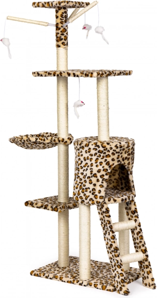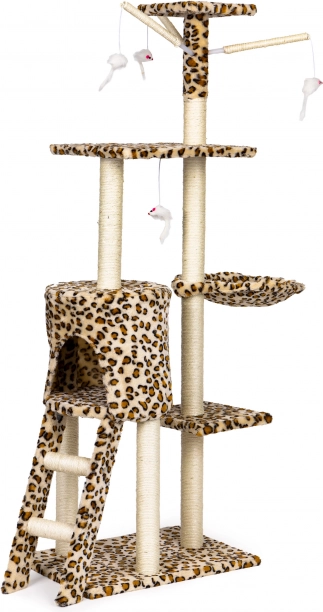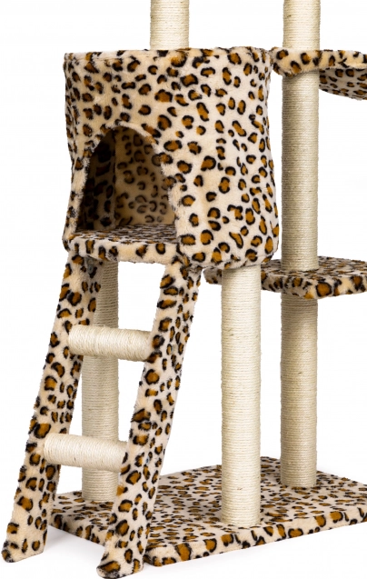 Creëer voor je kat een veilige plek om te rusten, krabben en spelen. Deze hoge krabpaal met luipaardpatroon staat op een stevige MDF-bodem en is uitgerust met met sisal omwikkelde palen, die de natuurlijke krabinstincten ondersteunen en tegelijk je meubels sparen. De hoogste uitkijkplek biedt je kat overzicht over de hele ruimte.