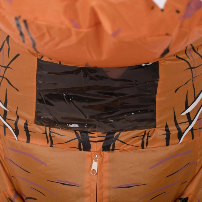 Praktische details maken het verschil: het kostuum heeft een rits aan de voorkant voor snel omkleden, aangezette handschoenen kun je eenvoudig afdoen zonder ze te verliezen, en het kijkvenster onder de bek zorgt voor veilig zicht. De meegeleverde blower op 4× AA houdt het kostuum de hele tijd mooi opgeblazen.