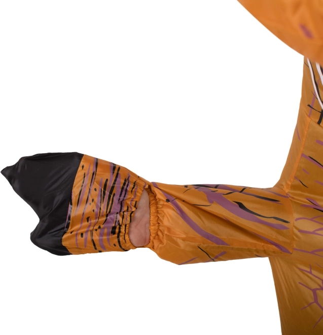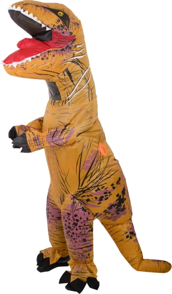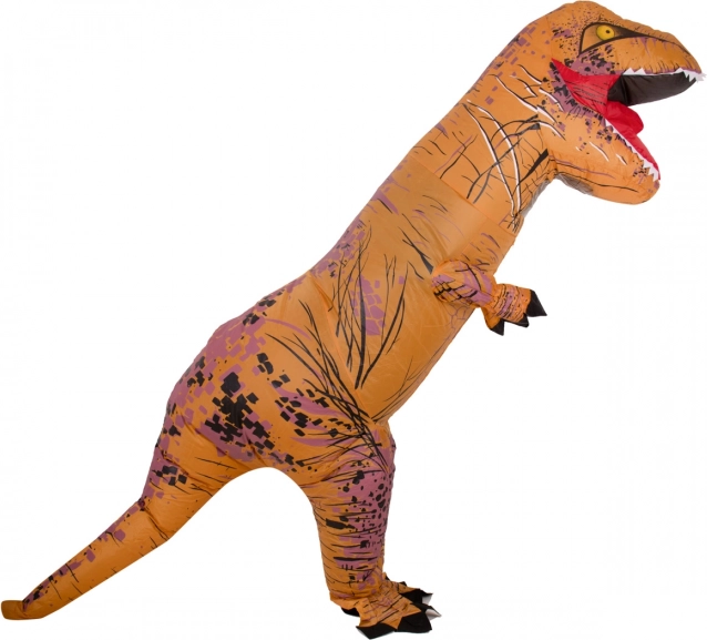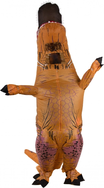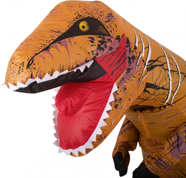 Gedetailleerde print, open bek met zichtbare tanden en dinosaurusklauwen zorgen voor een wow‑effect op elk evenement.