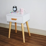 Strakke lijnen, witte kleur en natuurlijk hout van de poten geven de ruimte frisheid en lichtheid. Ideaal als nachtkastje of bijzettafel.