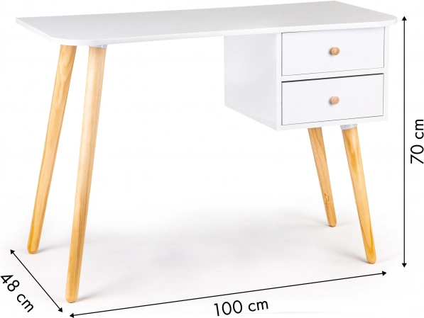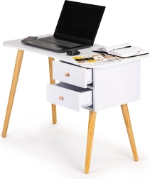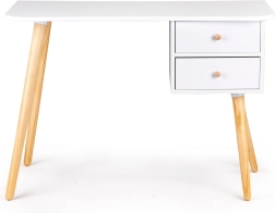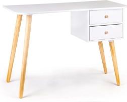 De stijlvolle tafel ModernHome onderscheidt zich door een minimalistisch Scandinavisch design dat perfect past in moderne interieurs. Dennenhouten poten in een natuurlijke afwerking harmoniëren met het witte blad en zorgen voor sterkte en stabiliteit. De praktische twee laden houden documenten, schrijfblokken en kleine spullen altijd binnen handbereik.