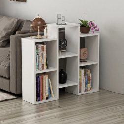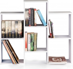 Creëer een overzichtelijke en esthetische opbergruimte voor boeken, tijdschriften en decoraties. Deze witte boekenkast met open planken valt op door strakke lijnen en tijdloze geometrie, passend bij moderne interieurs. Dankzij de draaibare constructie kunt u het rek aan de ruimte aanpassen en de oriëntatie naar wens wijzigen.