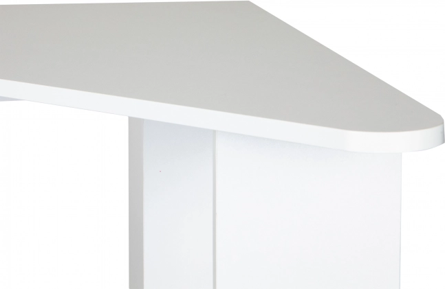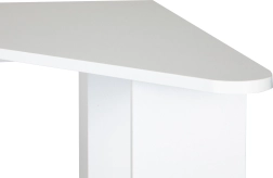 Het moderne hoekbureau is een ideale keuze voor kleinere ruimtes waar elke centimeter telt. De driehoekige constructie schuift eenvoudig in een hoek en creëert een stabiele werkplek met strakke lijnen. Het blad en de planken zijn gemaakt van duurzame gelamineerde spaanplaat, die gemakkelijk te onderhouden is en een elegante uitstraling heeft.