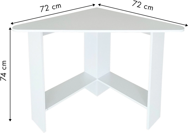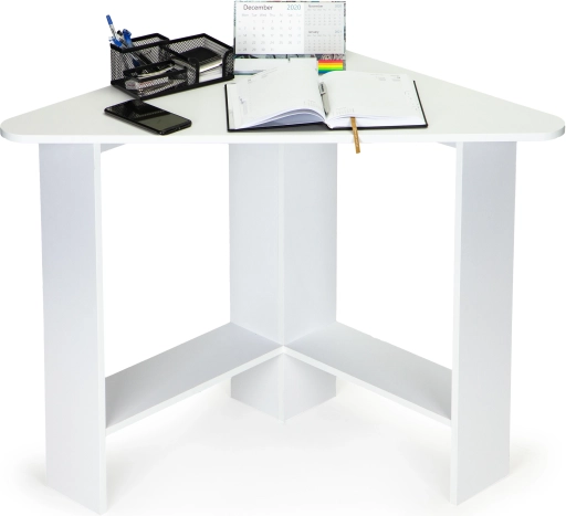 Het driehoekige werkblad schuift netjes in de hoek, zodat je de beschikbare ruimte in kamer, kantoor of studeerhoek maximaal benut.