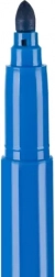 De afbeelding toont een gedetailleerd beeld van een blauwe plastic stift met een donkere punt, ontworpen voor precisie bij het tekenen of schrijven. Zijn gladde plastic lichaam suggereert gemakkelijke hantering.