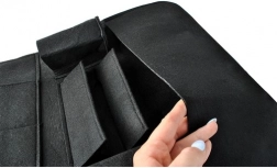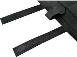 De organizer is gemaakt van viltmateriaal, wat zorgt voor zijn lichtheid en gemakkelijke hanteerbaarheid. De installatie van de organizer is snel en intuïtief: het bovenste gedeelte wordt met klittenband bevestigd aan het onderste deel van de hoofdsteun, en het onderste gedeelte wordt met metalen haken aan de stoel vastgemaakt.