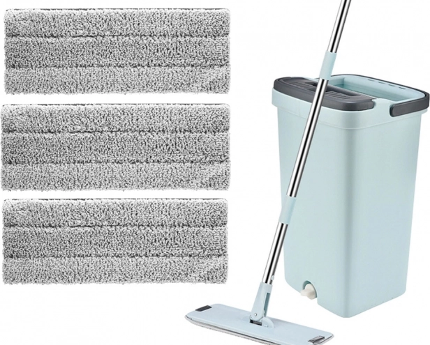 De mop heeft een antisliphandvat en een drietrapsstok die eenvoudig te monteren is voor praktisch opbergen. De set bevat ook drie microvezel schoonmaakdoeken die effectief vuil en water absorberen.