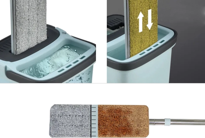 Geschikt voor de reiniging van tegels, marmer, keramiek, hout en andere materialen, maakt deze mop eenvoudig spoelen, wringen en wassen in één stap mogelijk.