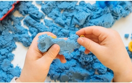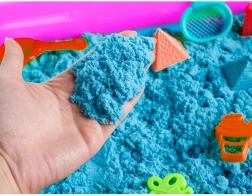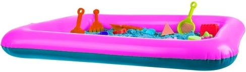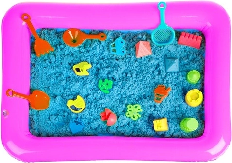 Speelzand met magische eigenschappen is een geweldig cadeau-idee voor ieder kind. Met dit zand kun je ook prima thuis spelen. Als het buiten waait, regent of sneeuwt, staat niets het spelen in de weg – je hebt alleen een bak met magisch zand nodig en laat de fantasie de vrije loop! De kinderset bevat 14 plastic vormpjes, een harkje, een zeef, een schepje en een trechter. Met zulke accessoires verveel je je nooit. De set bevat ook een opblaasbare zandbak, waardoor het speeloppervlak netjes blijft.