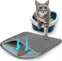 Geen kattengrit meer door het hele huis. De dubbellaagse PETSI-mat met honingraat-/meshstructuur vangt grit direct bij de uitgang van de kattenbak op. Vuil valt in de onderste kamer, vanwaar je het in een oogwenk terug in de bak of in de prullenbak giet.