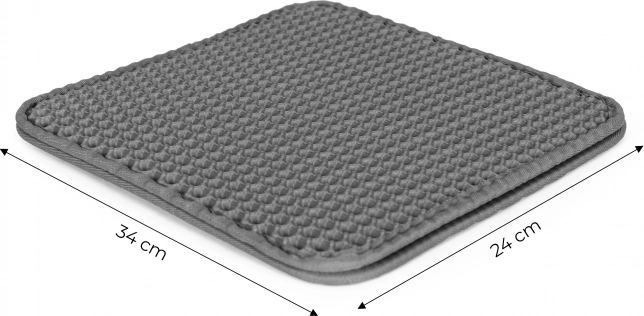 De praktische dubbellaagse kattenbakmat in elegante grijze kleur van PETSI houdt de omgeving van de kattenbak schoon. Dankzij de bovenste laag met netstructuur wordt uitgestrooid kattengrit opgevangen, valt het in de mat en is het eenvoudig uit te gieten. De mat is antislip, duurzaam, pootvriendelijk en makkelijk te reinigen.