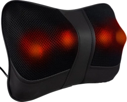 Twee massagekoppen met vier kogelkopjes draaien in twee richtingen en bieden een massage- en een ontspanningsmodus om stijve nek- en rugspieren los te maken.