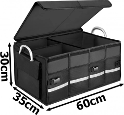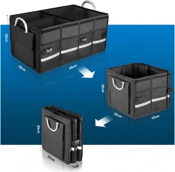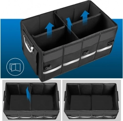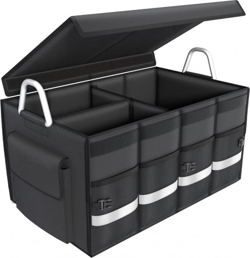De praktische kofferbakorganizer houdt je spullen op hun plek en beschermt ze tegen rommel en vocht. Het deksel met sluiting voorkomt dat de inhoud tijdens het rijden eruit valt, terwijl de robuuste constructie met verstevigde bodem voor stabiliteit zorgt. Zijvakken van mesh en vakverdelers helpen je alles snel terug te vinden. Ideaal voor dagelijks gebruik, uitstapjes en langere reizen.