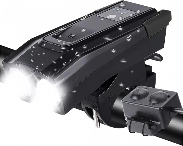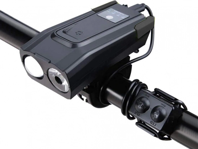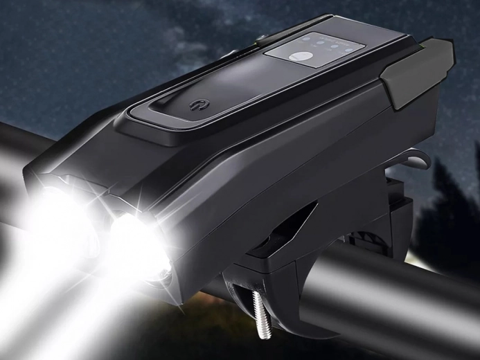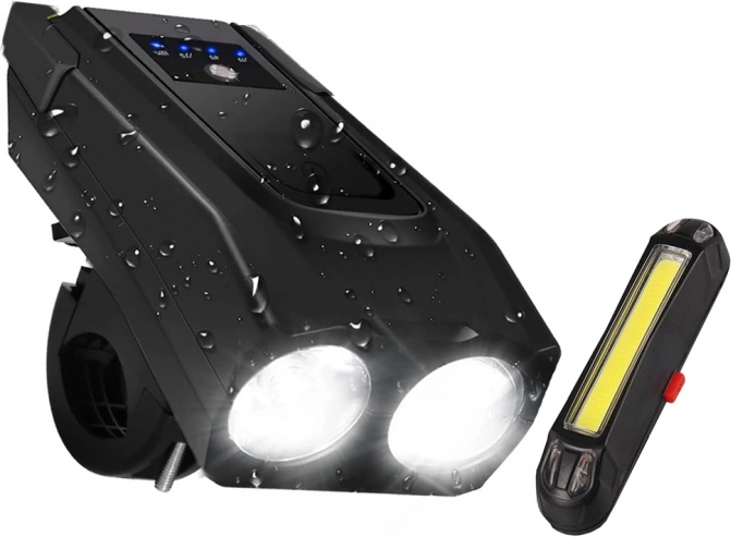 Complete set voor veilig fietsen in het donker en bij slecht zicht. De voorlamp gebruikt twee krachtige LED-bronnen – één met groot bereik en één met een groothoeklens voor perfecte dekking van het gebied vóór je fiets. De ingebouwde claxon met 6 geluiden helpt je snel de omgeving te waarschuwen, terwijl het achterlicht met 5 modi je zichtbaarheid van achteren vergroot.
