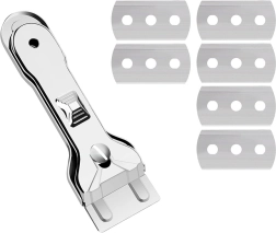 In de verpakking vindt u naast de schraper ook 6 reserve messen. Met deze set bent u perfect voorbereid op het schoonhouden van uw keuken.