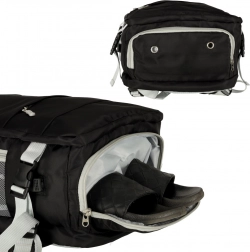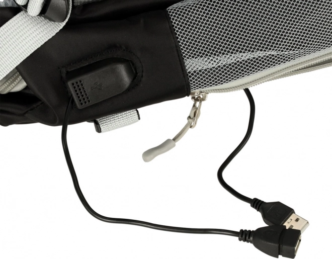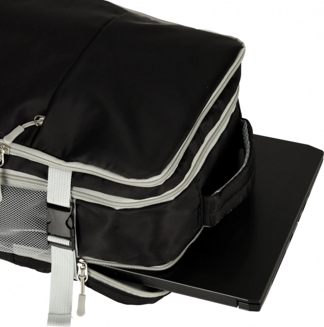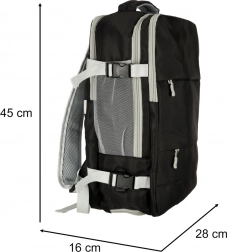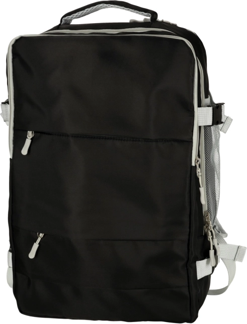 Grote waterdichte reisrugzak, bruikbaar voor dagelijks dragen en als handbagage. Het heeft compressiebanden die het volume van de volle rugzak verminderen. Dankzij het aantal vakken kunt u uw spullen naar behoefte organiseren, inclusief een speciaal vak voor schoenen. Het product bevat een USB-poort en kabel voor eenvoudig opladen van mobiele apparaten direct vanuit de powerbank in de rugzak.