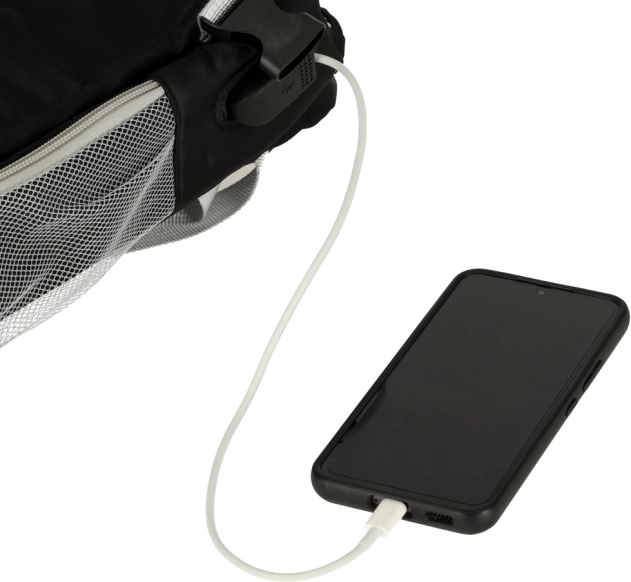 Voor het eenvoudig opladen van mobiele apparaten zonder de powerbank uit de rugzak te halen.