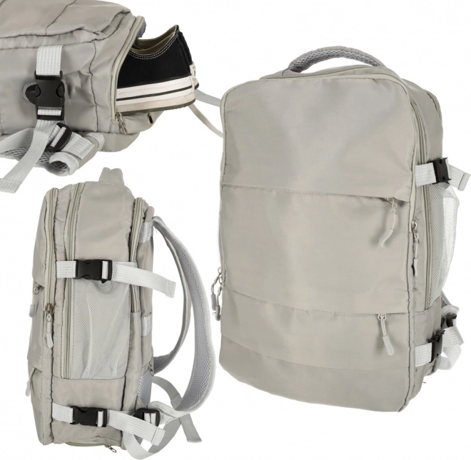 De grote reistas is ontworpen voor dagelijks gebruik evenals voor reizen. Hij kan worden gebruikt als handbagage bij de meeste luchtvaartmaatschappijen. De compressiebanden aan de buitenkant maken het mogelijk om het volume van de ingepakte tas te verkleinen. Er zijn meerdere vakken, inclusief een speciaal vak voor schoenen, zodat je zonder problemen alle benodigde spullen kunt meenemen. Het beschikt over een USB-poort en USB-kabel voor eenvoudig opladen van je telefoon via een powerbank.