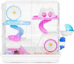 Vier verdiepingen verbonden door twee glijbanen en een geïntegreerd looprad stimuleren natuurlijke activiteit en helpen je knaagdier elke dag in topconditie te blijven.