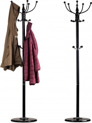 De kapstok met een strakke boomvormige silhouette biedt 5 bovenste armen met dubbele ophangposities en 4 lagere haken ideaal voor kinderen, mutsen of sjaals. De grote ronde voet met marmer-effect en zilveren accenten zorgt voor uitstekende stabiliteit, zelfs bij hogere belasting.