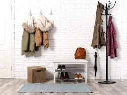 Vijf bovenste armen met dubbele posities en vier lagere haken bieden voldoende ruimte voor jassen, tassen, hoeden en ook kinderjacks.