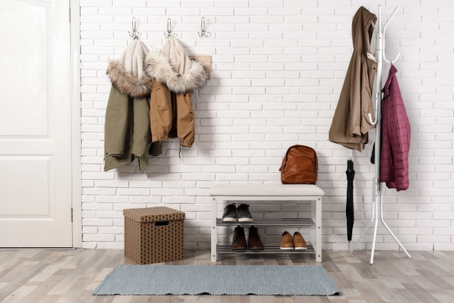 De haken op deze hoogte kunnen bovendien worden gebruikt om hoeden of paraplu’s op te hangen, zodat u ze altijd bij de hand hebt.