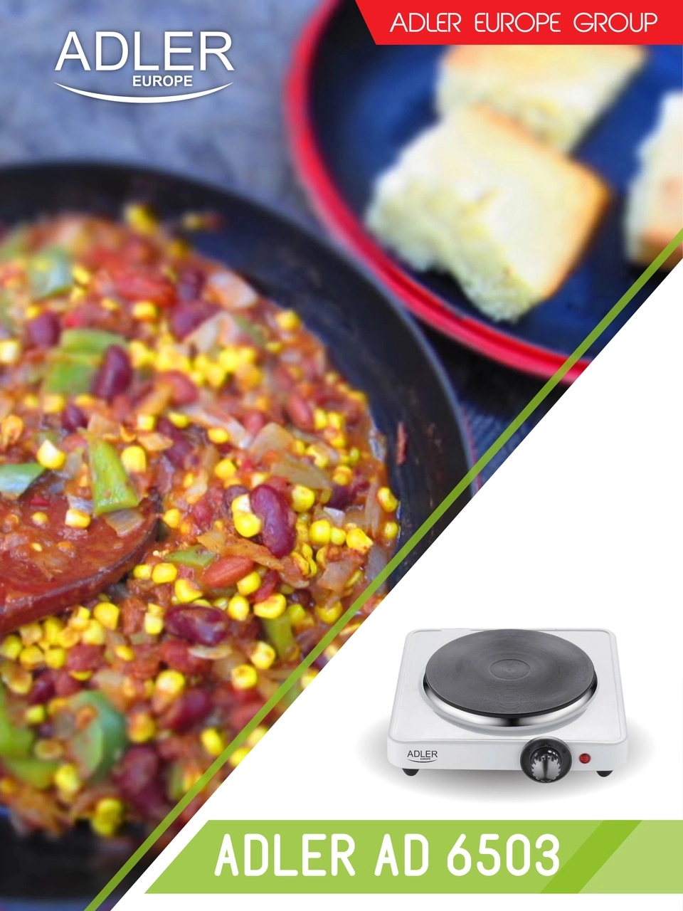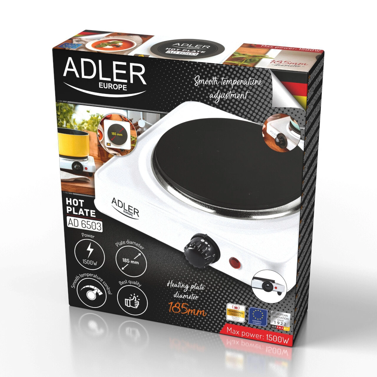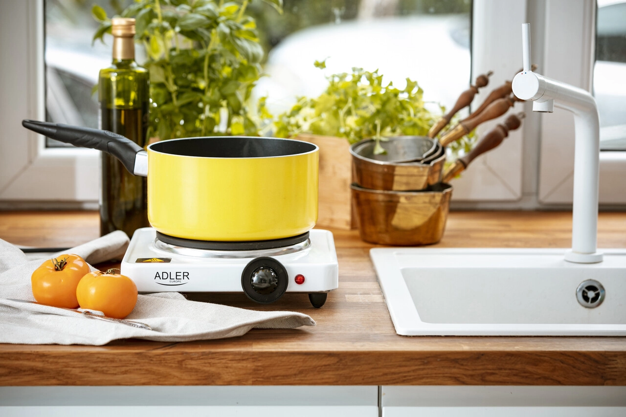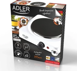 De elektrische éénpitskookplaat van ADLER is een praktische oplossing op plekken waar geen ruimte is voor een klassiek fornuis. U verwarmt er gemakkelijk soep mee, kookt pasta of maakt snel een avondmaaltijd. De plaat met een diameter van 185 mm verdeelt de warmte gelijkmatig en bereikt dankzij het vermogen van 1500 W in korte tijd de benodigde temperatuur.