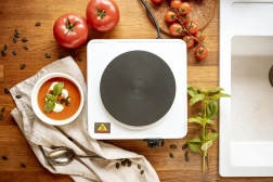 De bediening is intuïtief – met de draaiknop kiest u een van de 5 temperatuurniveaus. De stalen behuizing in het wit is eenvoudig te reinigen, de rubberen voetjes zorgen voor stabiliteit op het werkblad en het controlelampje geeft de inschakeling aan. De compacte afmetingen en de netsnoerlengte van 85 cm maken hem tot een uitstekende reisgenoot, geschikt voor huurwoningen of als back‑up bij uitval van het hoofdfornuis.