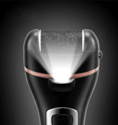 Het overzichtelijke display en de knoppen maken de bediening eenvoudig. Schakel tussen lage snelheid voor onderhoud en hoge snelheid voor verharde huid. Het geïntegreerde LED-licht verhoogt de precisie tijdens de behandeling.