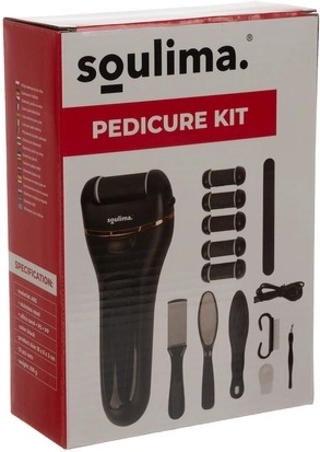 Verwen jezelf met gladde en mooie voeten met de elektrische voetvijl SOULIMA. Biedt 2 snelheden, LED-display en licht, 6 verwisselbare koppen in 3 korrelgroottes en een oplaadbaar, waterbestendig ontwerp voor het veilig en doeltreffend verwijderen van verhoornde huid en eelt.