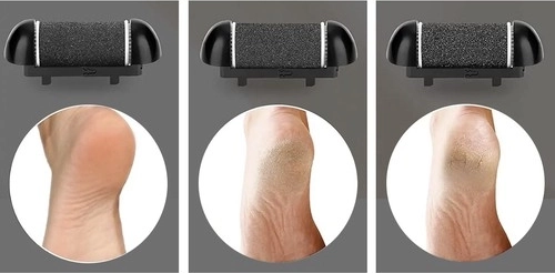 Twee snelheden laten je het vermogen afstemmen op zowel gevoelige verzorging als hardnekkiger eelt. In de verpakking vind je 6 koppen/rollers in drie korrelgroottes voor dagelijkse verzorging en intensief gladmaken. Het apparaat is oplaadbaar (USB) en waterbestendig voor eenvoudig afspoelen na gebruik.