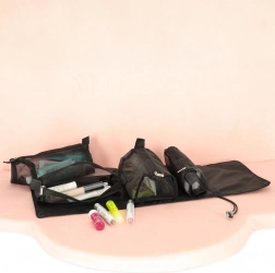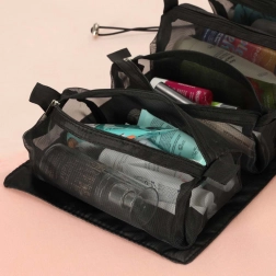 De opvouwbare reistasje van Leegoo is de perfecte metgezel voor jouw trips. Met een grote capaciteit en vier gescheiden compartimenten kun je efficiënt een groot aantal producten inpakken. Elk compartiment heeft een rits voor veilige opslag en de mesh-wanden zorgen voor gemakkelijke herkenning van de inhoud.