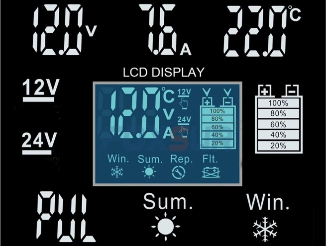 - LCD-display – duidelijke weergave van spanning, stroom en laadtoestand