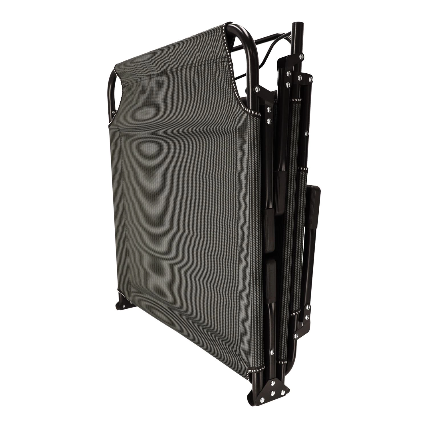 Dankzij de compacte afmetingen in opgevouwen toestand en het lage gewicht is het bed makkelijk te dragen en op te bergen. De praktische afneembare matras en het kussen maken onderhoud en personalisatie eenvoudig. De in 5 stappen verstelbare hoofdsteun maakt het mogelijk de ideale positie in te stellen voor lezen, slapen en relaxen.