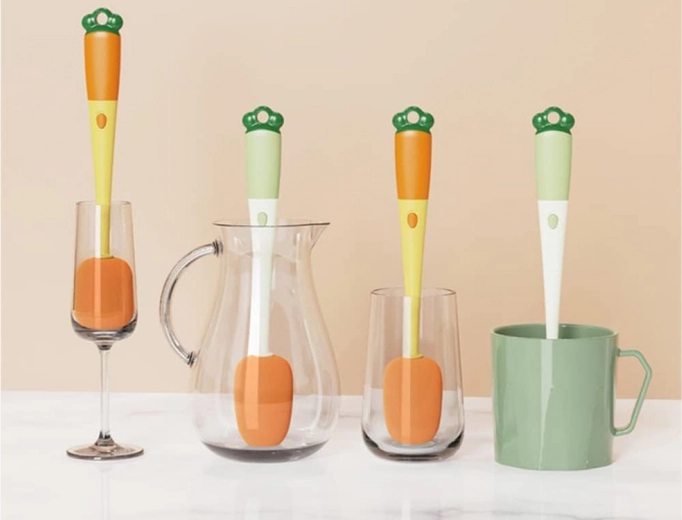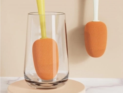 De zachte spons in combinatie met de gevormde borstel bereikt effectief de bodem en hoeken zonder het oppervlak van glas of plastic te beschadigen.