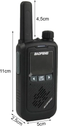 Dankzij de afmetingen 11 × 5 × 2,5 cm en de praktische clip passen de portofoons makkelijk in je zak en hinderen ze niet bij bewegen. Ideaal voor uitstapjes, sport en werk in het veld.