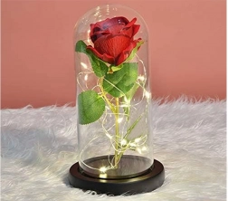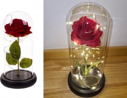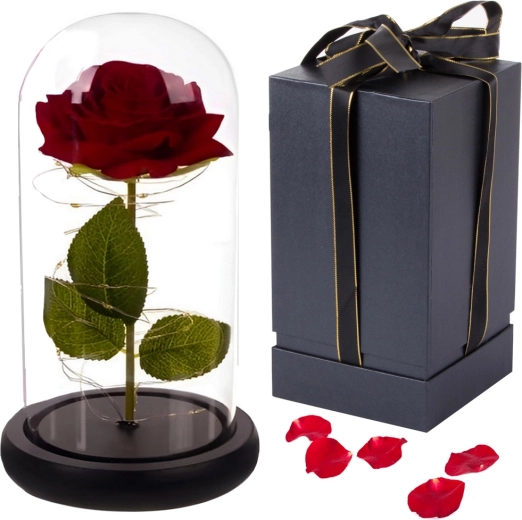 Deze stijlvolle decoratie, geïnspireerd op het sprookje “Belle en het Beest”, verrijkt elk interieur. De fijne lichtjes rond de rozenstengel verlichten de woonkamer, slaapkamer of feestelijk gedekte tafel en geven de ruimte een warme, magische gloed. Dankzij de elegante verpakking is het cadeau klaar om direct te overhandigen.