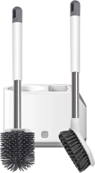 De houder en borstels zijn in een elegante combinatie van wit en grijs, wat een moderne uitstraling aan de badkamer geeft en tegelijkertijd zorgt voor eenvoudig gebruik en opslag.