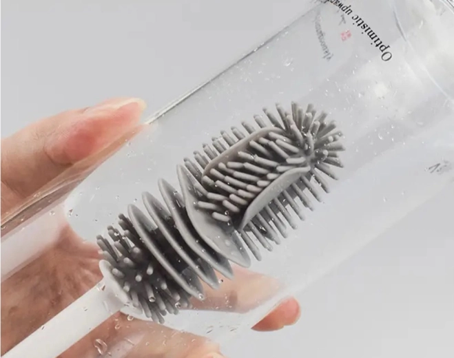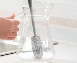 Onze flessenborstel heeft een flexibel ontwerp dat zich aanpast aan de vorm van glazen en flessen, wat zorgt voor grondige reiniging, zelfs op moeilijk bereikbare plekken.