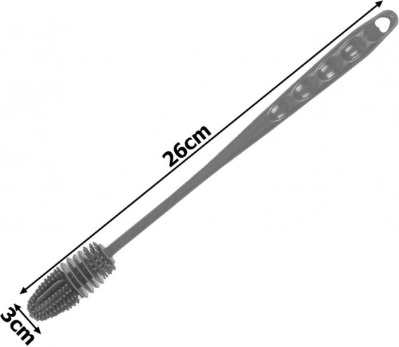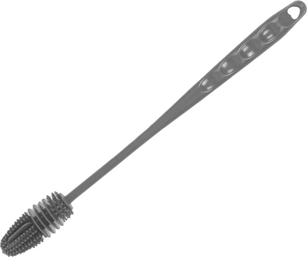 De ergonomisch ontworpen lange handgreep maakt het eenvoudig om diep in flessen en ander smal vaatwerk te reiken, wat het wassen vergemakkelijkt.