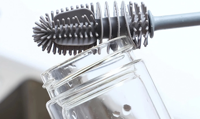 Dankzij de flexibele constructie past onze borstel zich perfect aan de vorm van elk glas en elke fles aan en zorgt voor een volledige en effectieve reiniging, zelfs op moeilijk bereikbare plaatsen.