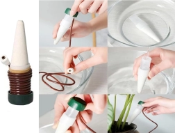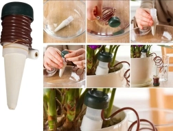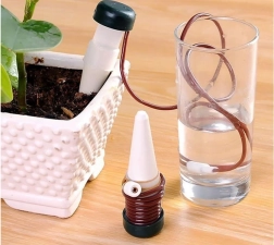 Dit automatisch bewateringssysteem is ontworpen om uw planten voortdurend gehydrateerd te houden, zelfs als u niet thuis bent. Keramische kegels worden in de grond van de bloempot gestoken en dankzij een slim systeem wordt water geleidelijk vrijgegeven. Deze methode is ideaal voor degenen die geen tijd hebben voor dagelijks water geven, of voor degenen die reizen en er zeker van willen zijn dat hun planten de benodigde zorg krijgen.