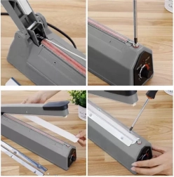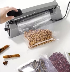 Handmatige folielasser is het ideale apparaat voor hermetisch afsluiten van verpakkingen, dat helpt de versheid van voedsel te behouden en beschermt tegen vocht en geuren. Dit product biedt eenvoudig gebruik met instelbare lassijstijd, wat betrouwbaar en makkelijk afsluiten van verschillende soorten plastic verpakkingen mogelijk maakt.
