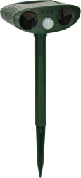 Deze afschrikker heeft een operationeel bereik van 6 tot 8 meter, dus het dekt grote gebieden zoals tuinen, boomgaarden of recreatiegebieden. Het is gemaakt van duurzaam plastic in groene kleur, dat opgaat in de omgeving en bestand is tegen alle weersomstandigheden.