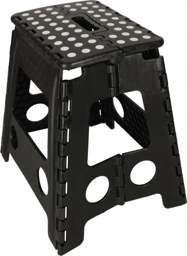Deze praktische opvouwbare kruk is een ideale hulp voor keuken, badkamer, werkplaats en kinderkamer. Dankzij de compacte afmetingen na het opvouwen kun je hem achter een kast of in de voorraadkast opbergen en precies pakken wanneer je hem nodig hebt. Antislipstipjes op de trede en stevig kunststof zorgen voor veilig gebruik.