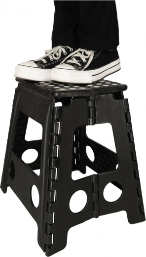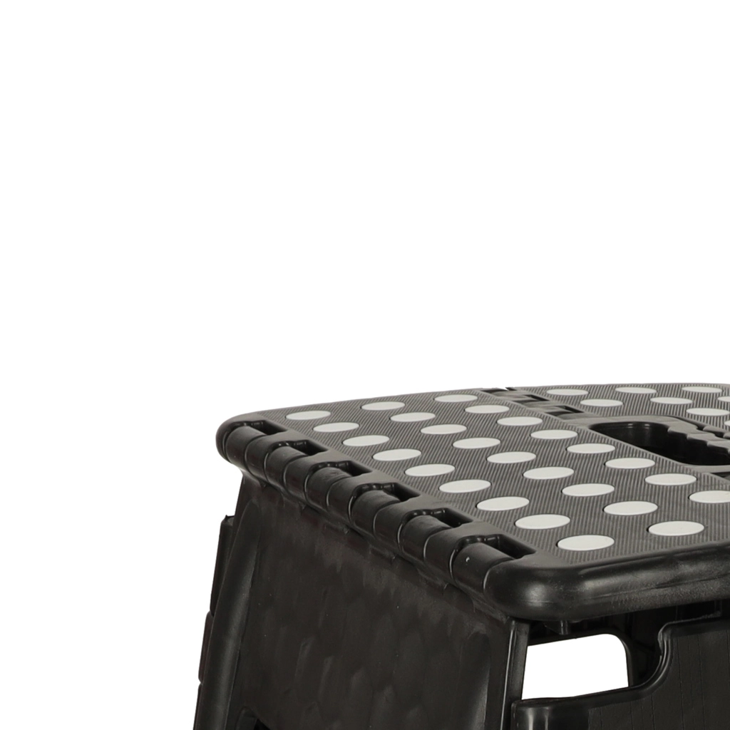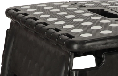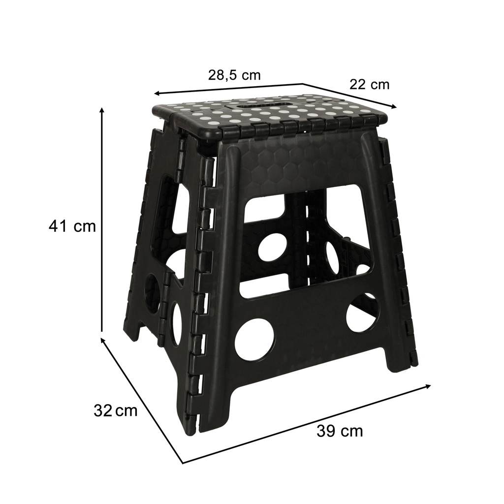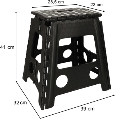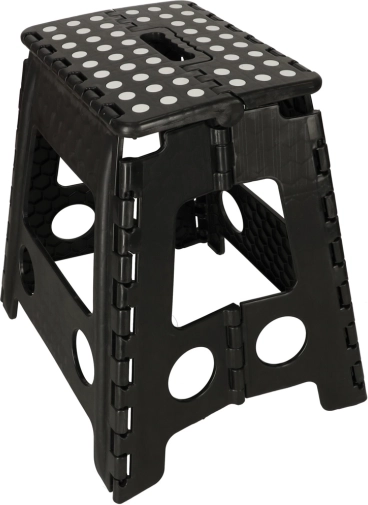 De kruk heeft een hoogte van 39,5 cm, zodat je gemakkelijk hogere planken en kastjes bereikt. Met een draagvermogen tot 150 kg is hij geschikt voor kinderen en volwassenen. Het geïntegreerde handvat maakt dragen en hanteren eenvoudig, terwijl het snelle vouwmechanisme ruimte bespaart.