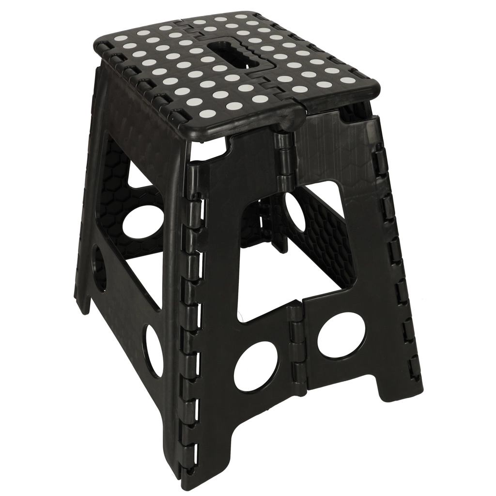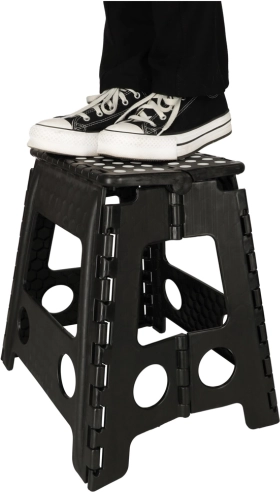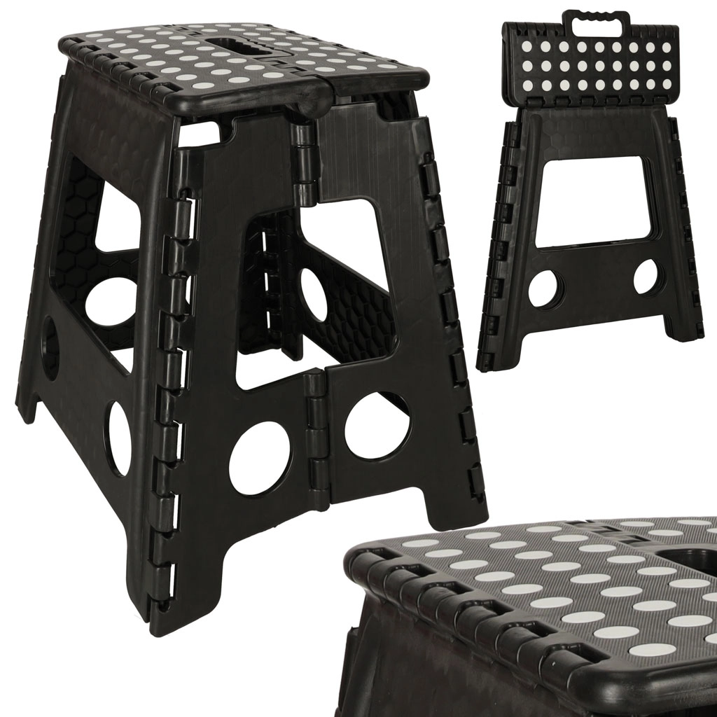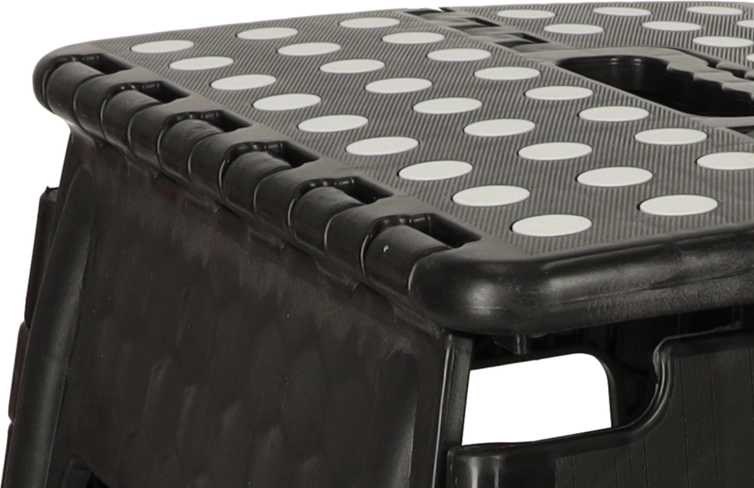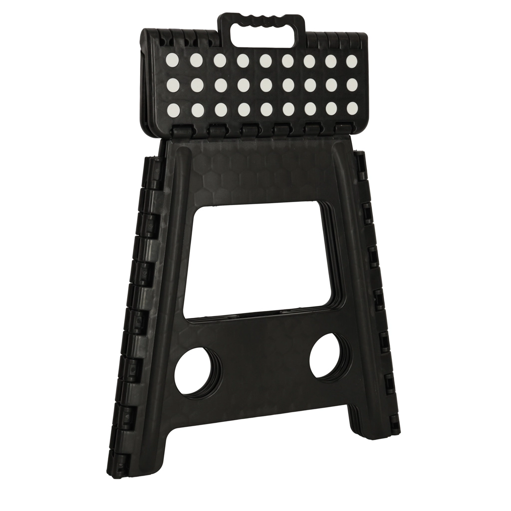 De kruk heeft een hoogte van 39,5 cm, zodat je gemakkelijk hogere planken en kastjes bereikt. Met een draagvermogen tot 150 kg is hij geschikt voor kinderen en volwassenen. Het geïntegreerde handvat maakt dragen en hanteren eenvoudig, terwijl het snelle vouwmechanisme ruimte bespaart.