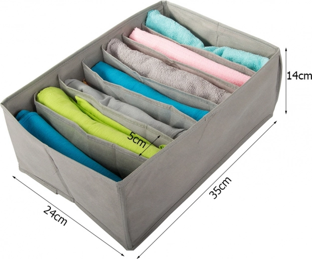 De ondergoedorganizer is een handige hulpmiddel die ervoor zorgt dat uw kledingladen overzichtelijk en opgeruimd blijven. Het is gemaakt van hoogwaardige stof en heeft versterkte zijkanten, wat zorgt voor zijn lange levensduur.