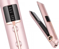 Ontdek de vrijheid van stylen zonder kabel. Keramische platen warmen gelijkmatig op, beschermen het haar tegen beschadiging en laten het glad en glanzend achter. Met drie vooraf ingestelde temperaturen pas je de verzorging eenvoudig aan voor fijn, geverfd of dik haar. Het LCD‑display toont duidelijk de gekozen temperatuur en de batterijstatus.